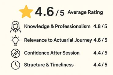 We work with students, recent graduates and early professionals who are working in the actuarial field, trying to make sense of the actuarial field and develop their skills portfolio, in a competitive workplace. Our 1-on-1 sessions will provide you with: